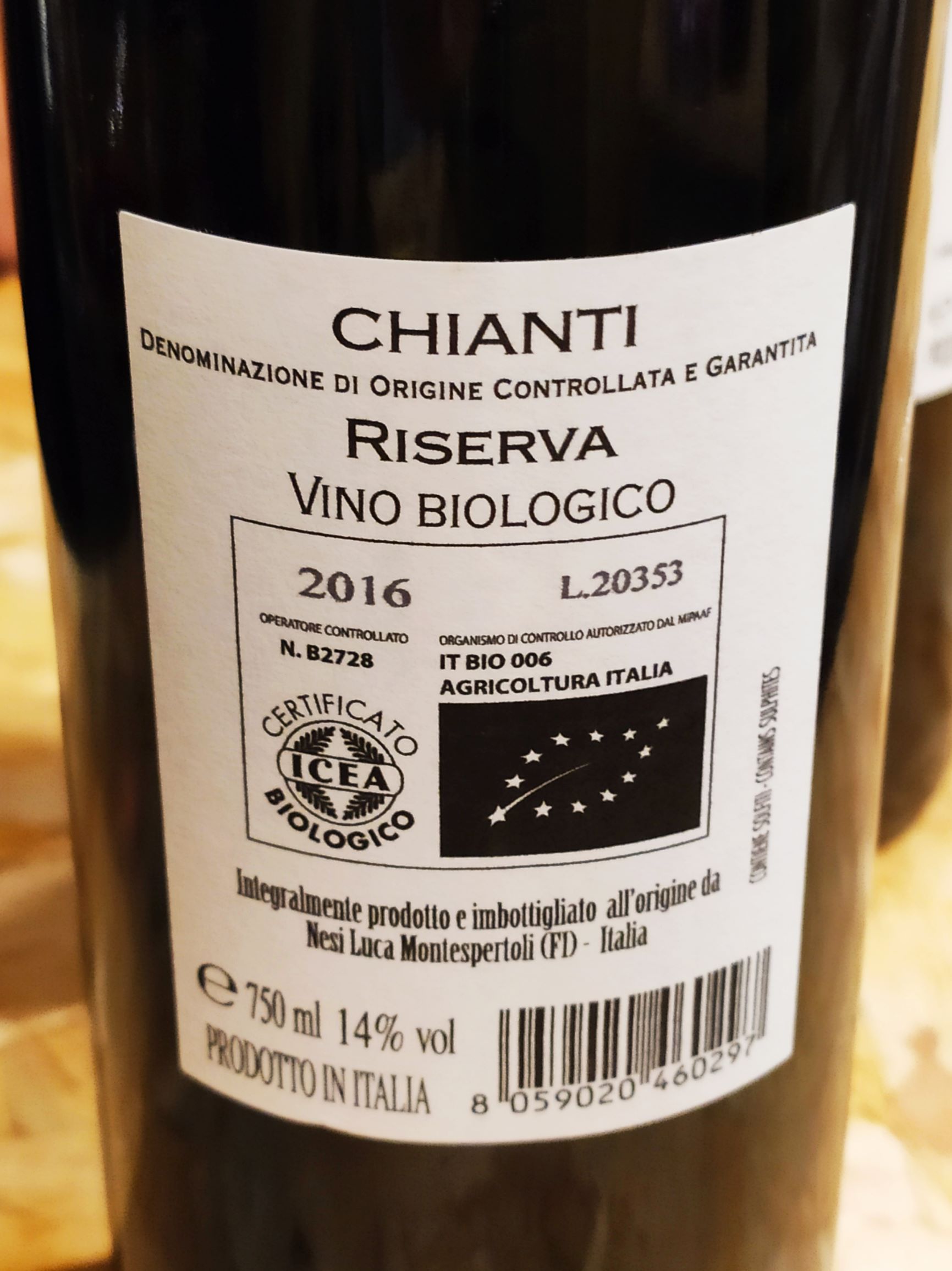 Termino col Chianti DOCG Riserva 2016, sangiovese in purezza, anch’esso proveniente da un cru, di terreno a medio impasto in prevalenza argilloso. Dopo una macerazione di circa 12-15 giorni, durante la quale si completa la fermentazione, il mosto viene trasferito per metà in cemento, e per metà in barriques e tonneaux di primo o secondo passaggio. L’affinamento in legno può durare dai 10 ai 18 mesi (a seconda delle annate e dell’equilibrio cercato), poi avviene il blend con il resto della massa. Nel bicchiere il Riserva ha un colore rosso rubino caldo, e sprigiona aromi di frutta sotto spirito, denotando già una certa potenza. In bocca si evidenzia la componente balsamica, con tannini levigati e sorso fluido, di ottima lunghezza.