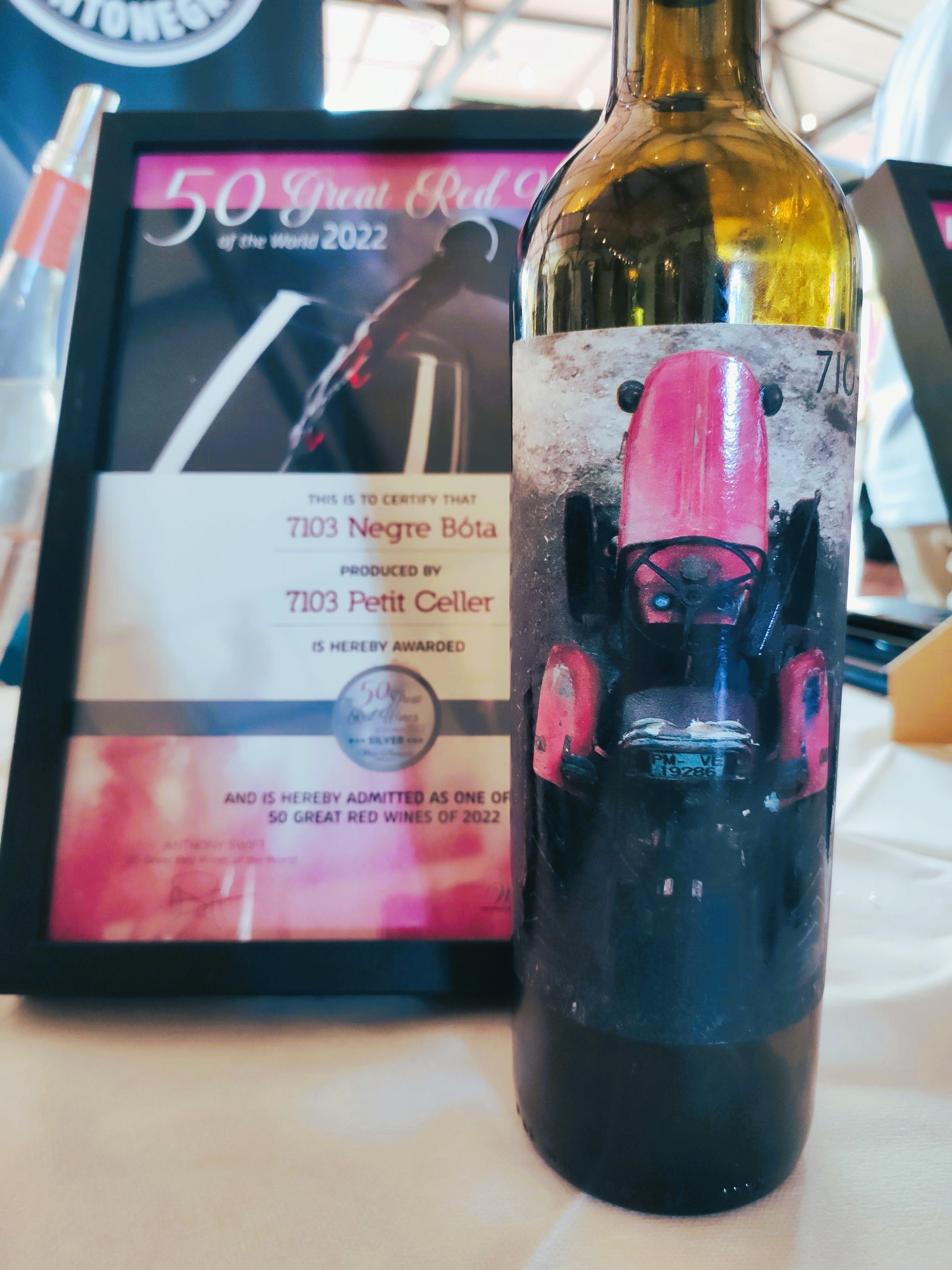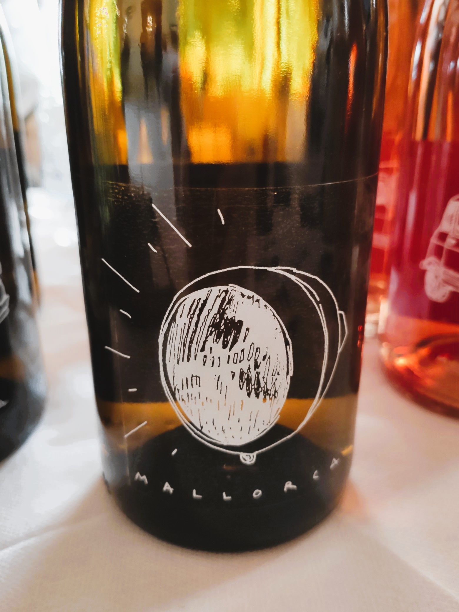 Come accennato, il catalogo di 7103 conta su numerose (e curiose!) etichette sotto la denominazione “Vi de la terra – Mallorca”. Per partire assaggio il Premsal Blanc 2021, dal vitigno omonimo, bianco di bassa acidità, dal gusto fruttato e leggero (solo 11 gradi), elevato in acciaio. Il Blanc de Mantonegro 2021 si ricava vinificando in bianco i grappoli di mantonegro – uva locale a bacca rossa molto versatile – con affinamento in tank a forma di uovo; fra le note spiccano il colore giallo brillante, la mineralità e il corpo avvolgente, di buona struttura.