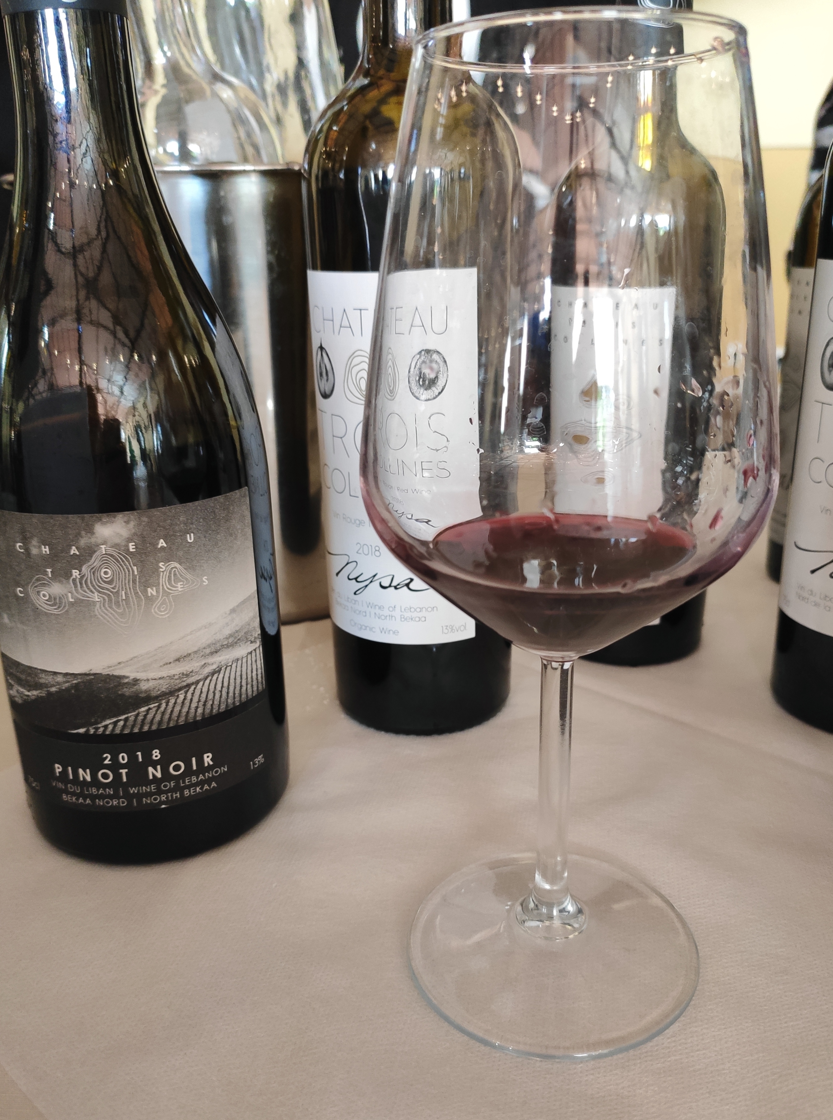 L’attuale produzione annua – interamente certificata biologica – ammonta a 150.000 bottiglie, con l’obiettivo di arrivare a 300.000. Piuttosto numerosa la gamma delle etichette, con una nutrita presenza di bianchi e rosé, in linea con le richieste dei consumatori locali. Da sottolineare che la grafica, evocante la morfologia delle tre colline che circondano la cantina, è frutto di un concorso bandito all’università di Beirut.