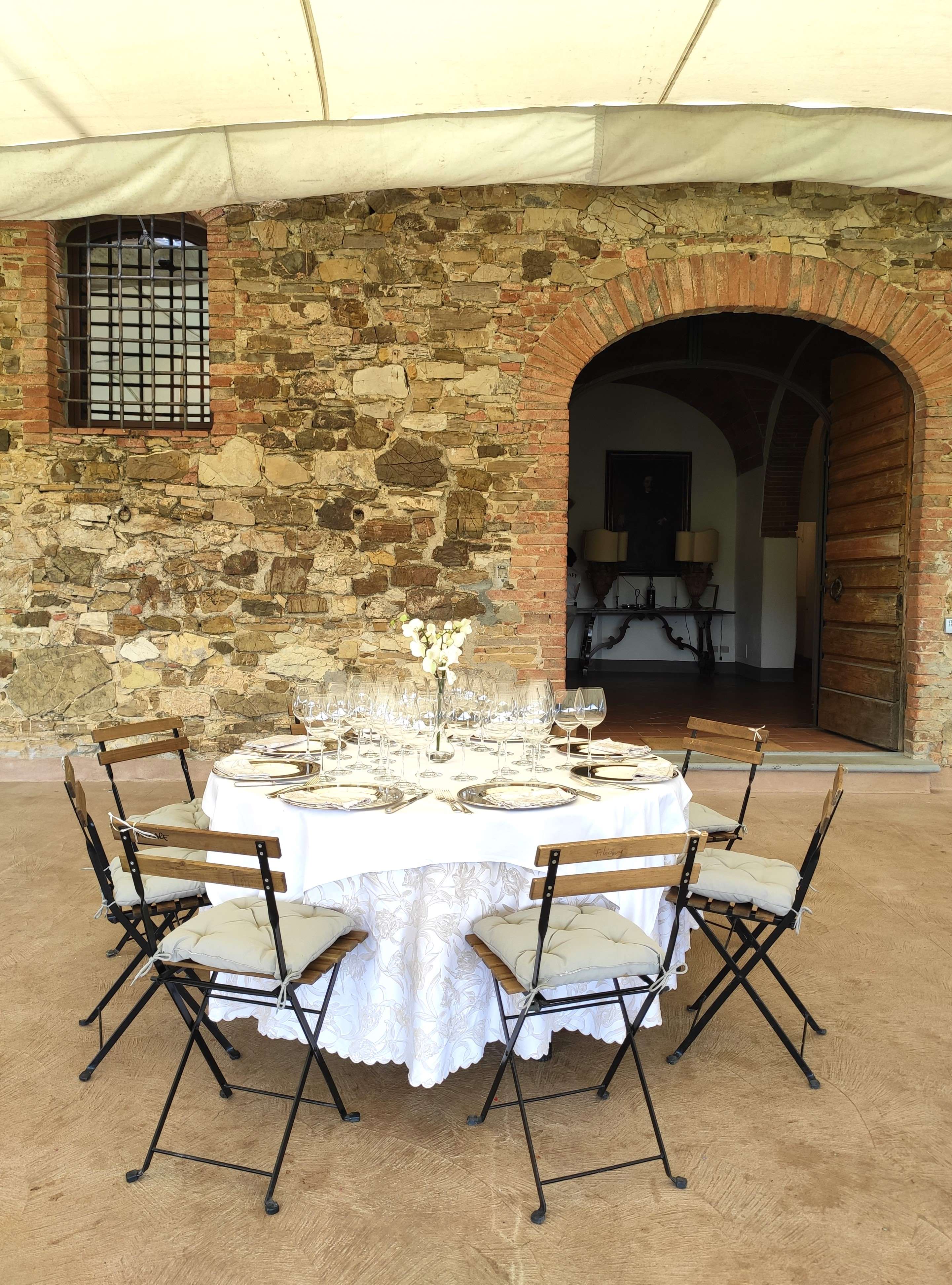 La tenuta, collocata al crocevia tra le province di Firenze e Siena e parte di un borgo di origine medioevale, appartiene dalla fine degli anni ‘70 alle famiglie Cassetti-Burchi, che si dedicano da subito al recupero degli immobili e dei terreni, all’epoca in stato di abbandono. Si deve all’iniziativa di persone come loro il ritorno di queste zone all’antica bellezza, e a quello che in tutto il mondo è conosciuto e ammirato col nome di Chianti-shire. Oggi è Alessandro Burchi a portare avanti l’attività col supporto del figlio Lorenzo, coadiuvati dall’enologo Alberto Antonini e dall’agronomo Raffaello Tiezzi, che ci hanno accompagnato nella visita odierna assieme alla sommelier della tenuta Valentina Porretta, curatrice dell’evento.